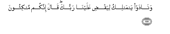 77. Nao watapiga kelele waseme: Ewe Malik! Na atufishe Mola wako