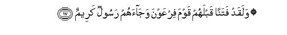17. Na hakika kabla ya hawa tuliwafanyia mtihani watu wa Firauni,