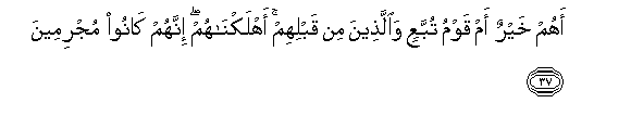 37. Je! Ni wao bora au watu wa Tubbaa' na walio kuwa kabla yao? Tuliwaangamiza.