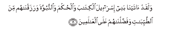 16. Na hakika tuliwapa Wana wa Israili Kitabu na hukumu na Unabii,
