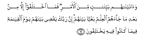 baada ya kuwajia ujuzi, kwa ajili ya uhasidi uliyo kuwa baina yao. Hakika
