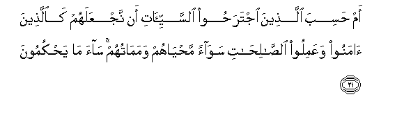 21. Je! Wanadhani wanao tenda maovu kuwa tutawafanya kama walio amini,