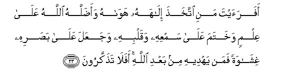 23. Je! Umemwona aliye fanya matamanio yake kuwa ndiye mungu wake,