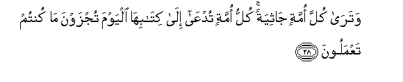 28. Na utauona kila umma umepiga magoti, na kila umma utaitwa kwenda