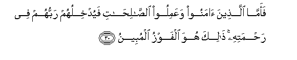 30. Ama walio amini na wakatenda mema, Mola wao Mlezi atawatia katika