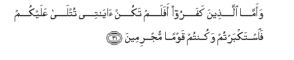 31. Na ama walio kufuru, wataambiwa: Kwani hamkuwa mkisomewa Aya