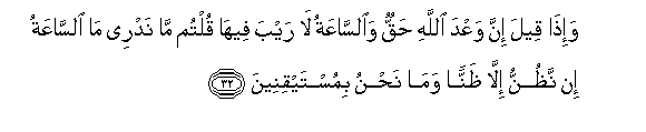 32. Na ikisemwa: Hakika ahadi ya Mwenyezi Mungu ni kweli, na Saa