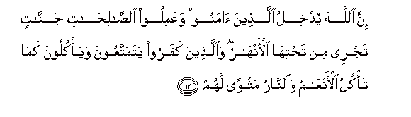 12. Hakika Mwenyezi Mungu atawaingiza walio amini na wakatenda mema