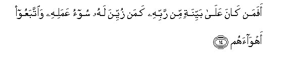 14. Je! Mwenye kuwa na bayana kutoka kwa Mola wake Mlezi ni kama