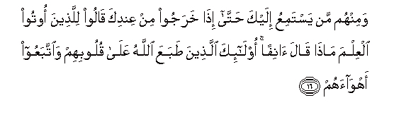 huwauliza walio pewa ilimu: Amesema nini sasa hivi? Hao ndio ambao Mwenyezi