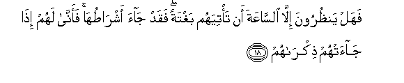 18. Kwani wanangojea jengine isipo kuwa iwafikie Saa (ya Kiyama)