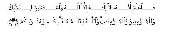 kwa dhambi zako na za Waumini wanaume na Waumini wanawake. Na Mwenyezi