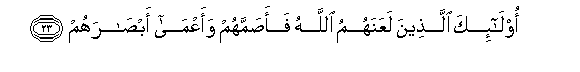 23. Hao ndio Mwenyezi Mungu alio walaani, na akawatia uziwi, na akawapofoa