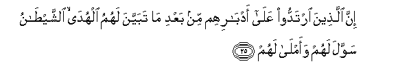 25. Kwa hakika wanao rudi nyuma baada ya kwisha wabainikia uwongofu,
