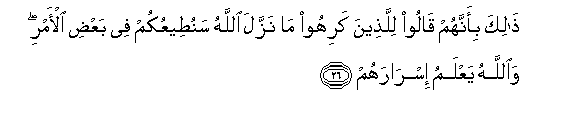 26. Hayo ni kwa sababu waliwaambia walio chukia aliyo yateremsha
