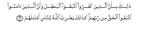 3. Hayo ni kwa sababu walio kufuru wamefuata upotovu, na walio amini