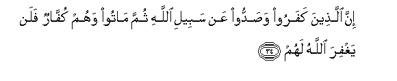 34. Hakika walio kufuru na wakazuilia njia ya Mwenyezi Mungu, kisha