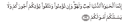 36. Hakika uhai wa duniani ni mchezo na pumbao. Na mkiamini na mkamchamngu