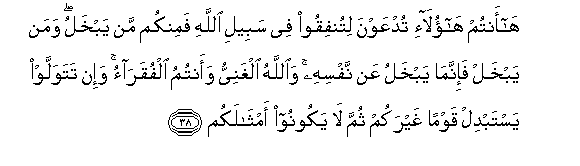 38. Angalieni! Nyinyi mnaitwa mtumie katika njia ya Mwenyezi Mungu,