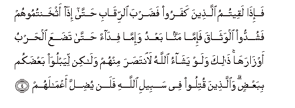 4. Basi mnapo wakuta walio kufuru wapigeni shingoni mwao, mpaka mkiwadhoofisha