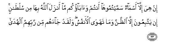 23. Hayo hayakuwa ila ni majina mliyo wapa nyinyi na baba zenu. Mwenyezi