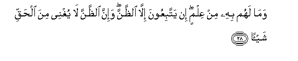 28. Nao hawana ujuzi wowote kwa hayo isipo kuwa wanafuata dhana tu.