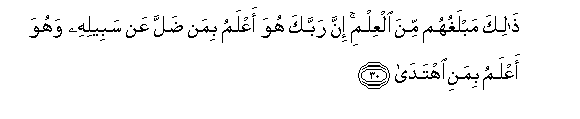 30. Huo ndio mwisho wao wa ujuzi. Hakika Mola wako Mlezi ndiye anaye
