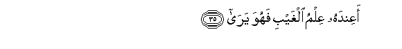 35. Je! Anayo huyo ilimu ya ghaibu, basi ndio anaona?
