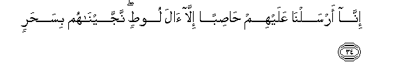 34. Hakika Sisi tukawapelekea kimbunga cha vijiwe, isipo kuwa wafuasi