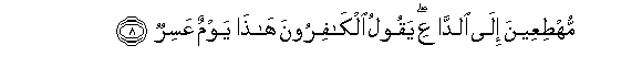 8. Wanamkimbilia mwitaji, na makafiri wanasema: Hii ni siku ngumu.