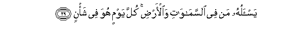 29. Vinamwomba Yeye vilivyomo katika mbingu na ardhi. Kila siku Yeye yumo katika mambo.
