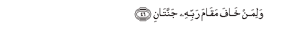 46. Na mwenye kuogopa kusimamishwa mbele ya Mola wake Mlezi atapata Bustani mbili.