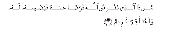 na wakamkopesha Mwenyezi Mungu mkopo mwema, watazidishiwa mardufu na watapata
