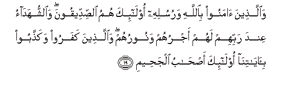 19. Na walio muamini Mwenyezi Mungu na Mitume wake, hao ndio Masidiqi
