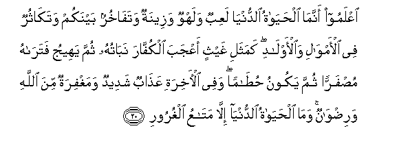 20. Jueni ya kwamba maisha ya dunia ni mchezo, na pumbao, na pambo,