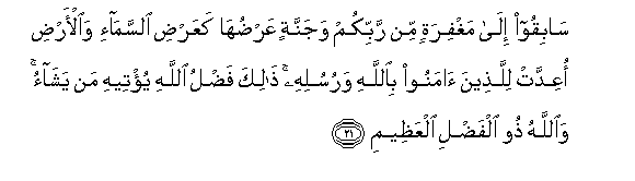 21. Kimbilieni msamaha wa Mola wenu Mlezi, na Pepo ambayo upana wake