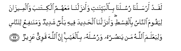 25. Kwa hakika tuliwatuma Mitume wetu kwa dalili waziwazi, na tukateremsha