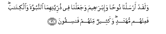 26. Na bila ya shaka tulimtuma Nuhu na Ibrahim, na tukaweka katika