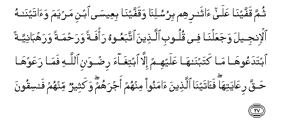 hatukuwaandikia hayo, ila kutafuta radhi za Mwenyezi Mungu. Lakini hawakuufuata
