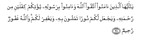 atakupeni sehemu mbili katika rehema yake, na atakujaalieni muwe na nuru