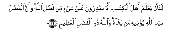 29. Ili watu wa Kitabu wajue kwamba wao hawana uweza wowote juu ya