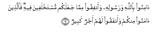 7. Muaminini Mwenyezi Mungu na Mtume wake; na toeni katika alivyo