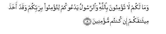 8. Na mna nini hata hamumuamini Mwenyezi Mungu na hali Mtume anakuiteni