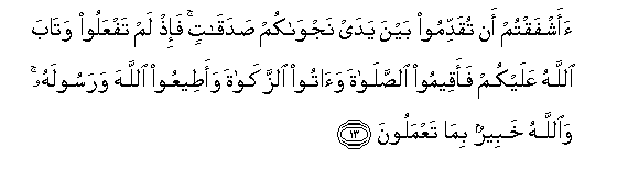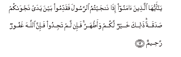 12. Enyi mlio amini! Mnapo sema siri na Mtume, basi tangulizeni sadaka