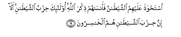 19. Shetani amewatawala na akawasahaulisha kumkumbuka Mwenyezi Mungu.