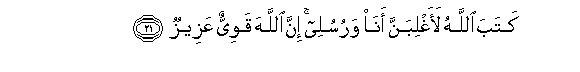 21. Mwenyezi Mungu ameandika: Hapana shaka Mimi na Mtume wangu tutashinda.