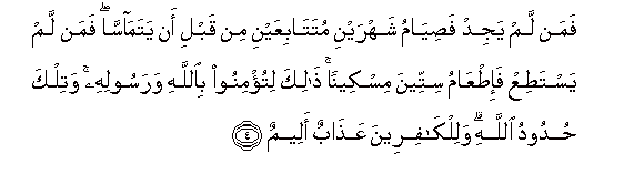 4. Na asiye pata mtumwa kumkomboa, basi na afunge miezi miwili mfululizo