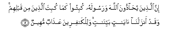 5. Hakika wanao pinzana na Mwenyezi Mungu na Mtume wake, watadhalilishwa