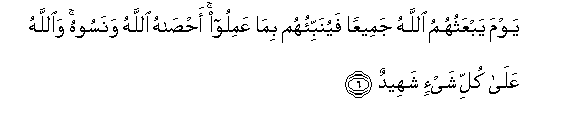 6. Siku atapo wafufua Mwenyezi Mungu, na awaambie yale waliyo yatenda.