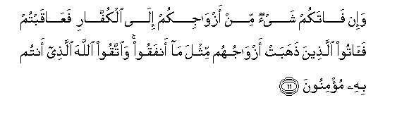 11. Na akitoroka yeyote katika wake zenu kwenda kwa makafiri, tena
